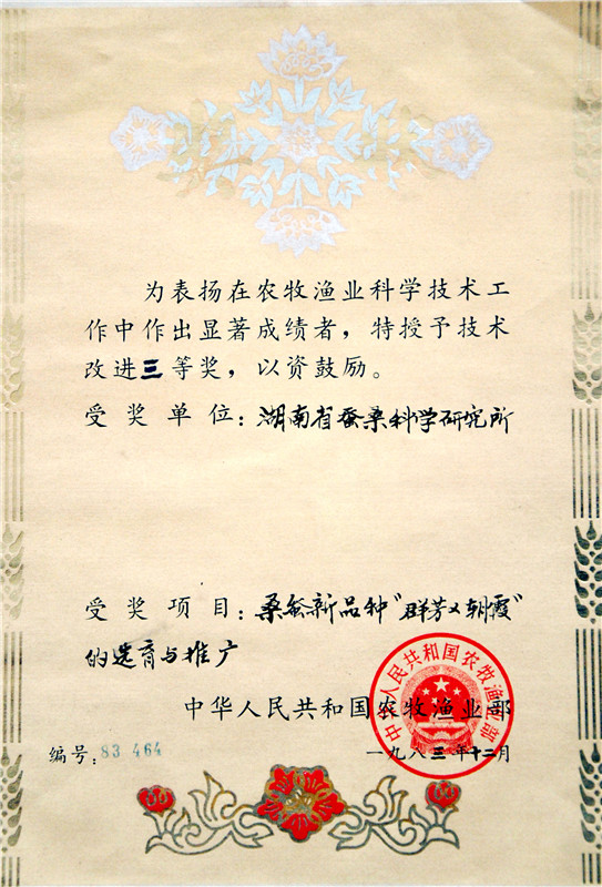 负责丝质检验。农业、供销两家商定,每年从蚕桑改进费中拨出专款,用于桑蚕新品种比试的经费开支,从而保证了新品种比试进展顺利并很快应用推广。1979年全省试养群芳×朝霞1万盒,1980年推广数占全省夏秋蚕种53%,1981年占60.7%,1982年占90.7%,湖南成为当时全国推广群芳×朝霞最早、最快、最多的省,这一种新蚕品种的普及应用,把湖南的夏秋蚕生产提高到一个新的水平。