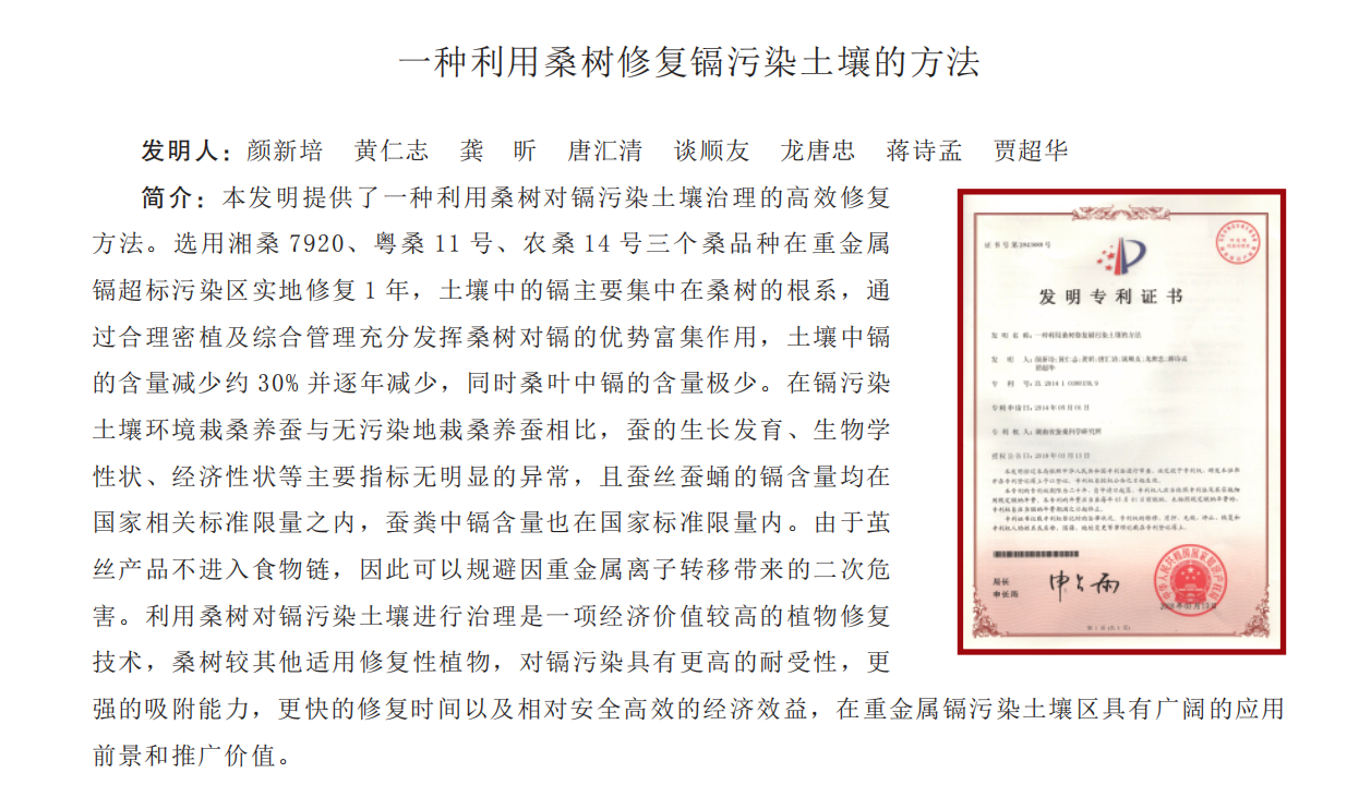 (专利) 一种利用桑树修复镉污染土壤的方法